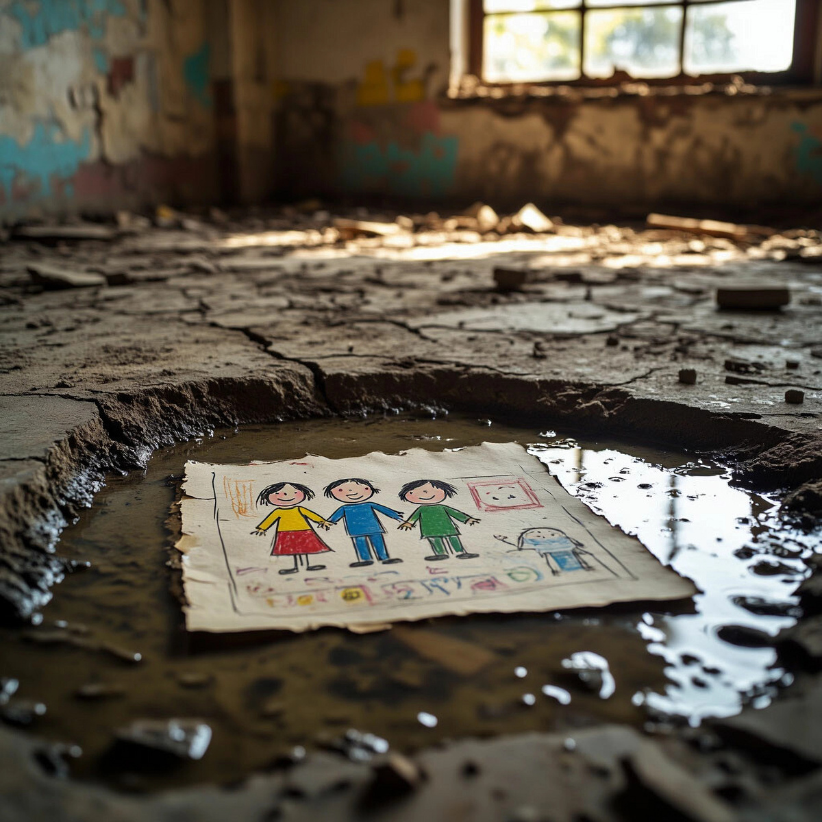 В одной из квартир, на третьем этаже, я увидел нечто, что заставило меня замереть. На бетонном полу, в круге из битого кирпича, лежали предметы. Выцветшая фотография молодой пары, обнимающейся на фоне леса. Дешевая пластиковая иконка. Детский рисунок, на котором криво нарисован дом, солнце и три человечка — мама, папа, я. Рядом — пожелтевшая выписка из банка с графиком погашения ипотеки. Это был своего рода алтарь. Алтарь несбывшейся надежды.