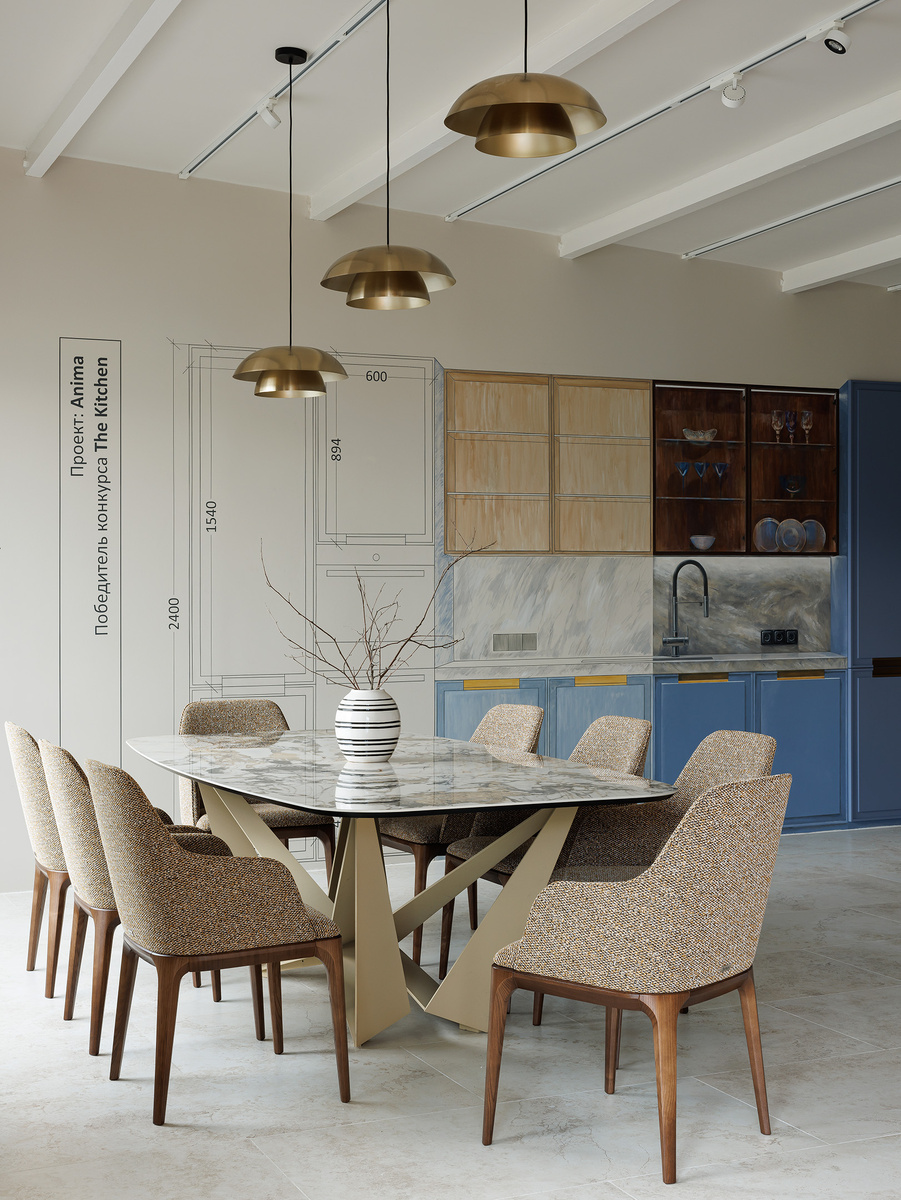 В интерьере шоурума при производстве Orange Park Joinery эти стулья играют важную роль — связывают архитектурную выразительность кухни Anima с тёплой, живой атмосферой обеденной зоны.