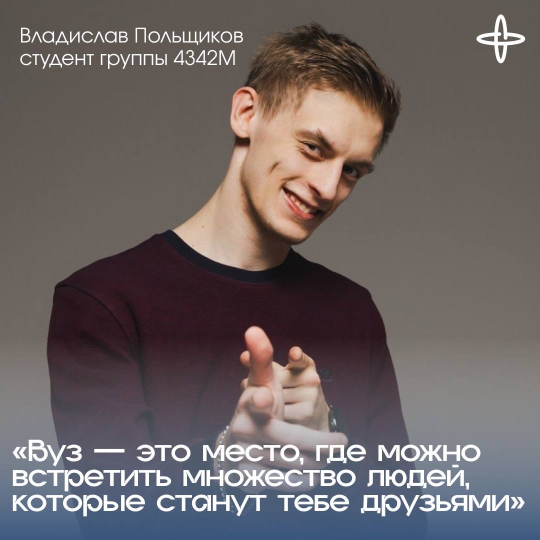 Владислав Польщиков — выпускник группы 4342М. В 2019 году он приехал в Санкт-Петербург, чтобы поступить в один из пяти вузов. Выбор пал на ГУАП — и, по его словам, это было лучшее решение. С чего началась твоя история в ГУАП? В 2019 году я приехал в Санкт-Петербург, чтобы поступить в вуз. Из пяти вузов Санкт-Петербурга я выбрал ГУАП и не прогадал. С каждым годом обучения я рос как личность и как специалист в своей области. Мой путь в ГУАП начался с линейки 1 сентября. Хорошее воспоминание оттуда: 29 юных парней и девушек из группы 4941 познакомились именно на ней. После линейки мы пошли в Парк Победы, где начали налаживать наши связи. В первый же день я сразу нашёл своих единомышленников, с которыми прошёл, а с некоторыми ещё буду проходить этапы своей жизни. Что тебе дала учёба в ГУАП? Каким ты стал за эти годы? Для меня вуз, в первую очередь, место, где можно встретить множество людей, которые станут тебе в жизни друзьями, коллегами, наставниками. Поэтому одними из важнейших навыков,