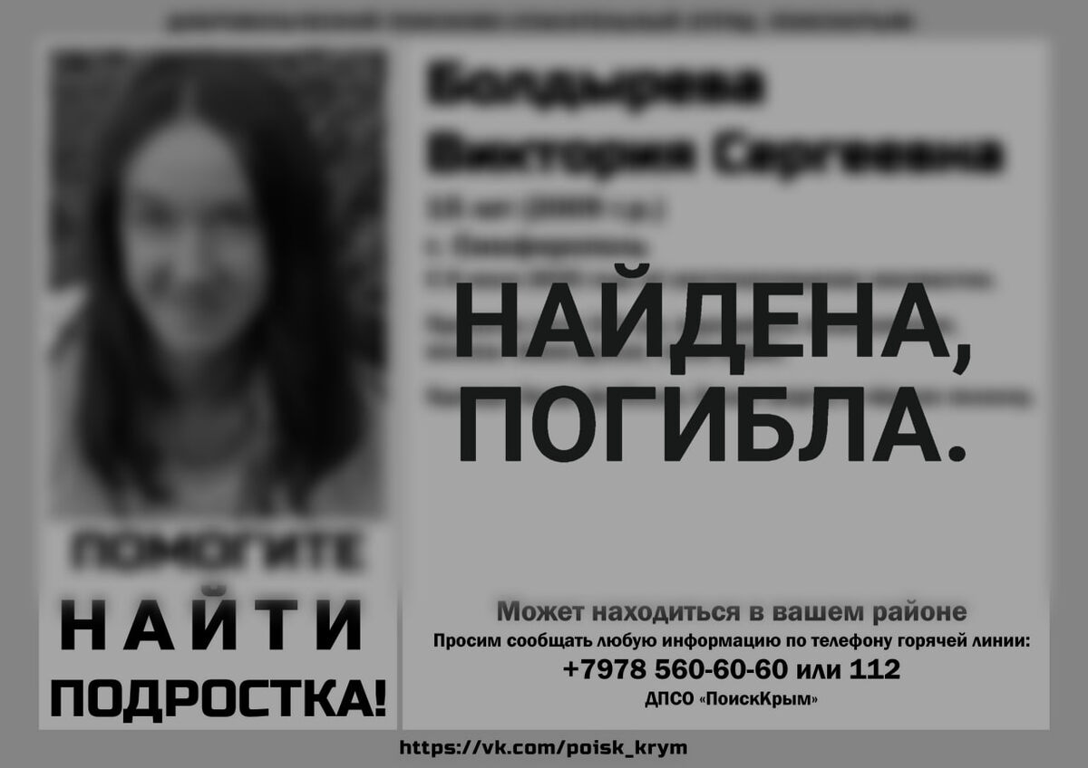 В ответ на пост Пропавшая 8 июля в Симферополе 15-летняя девушка найдена мертвой