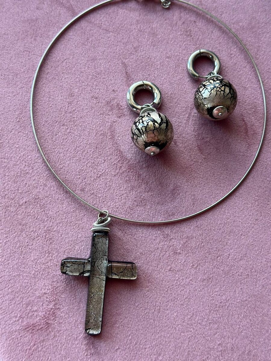 PJ: «Когда украшение – это высказывание, а не дополнение» Крест из муранского стекла на гривне 5700₽, стекло, платина высшей пробы, ювелирный сплав Колье тигровый глаз 7500₽, платина, муранское стекло, натуральный минерал Колье на гривне, 5700₽, серебро 999 Браслет 5700₽, серебро 999, муранское стекло Оформить заказ и получить стилистическую консультацию, пишите в @PJ_murano_pokupka_bot