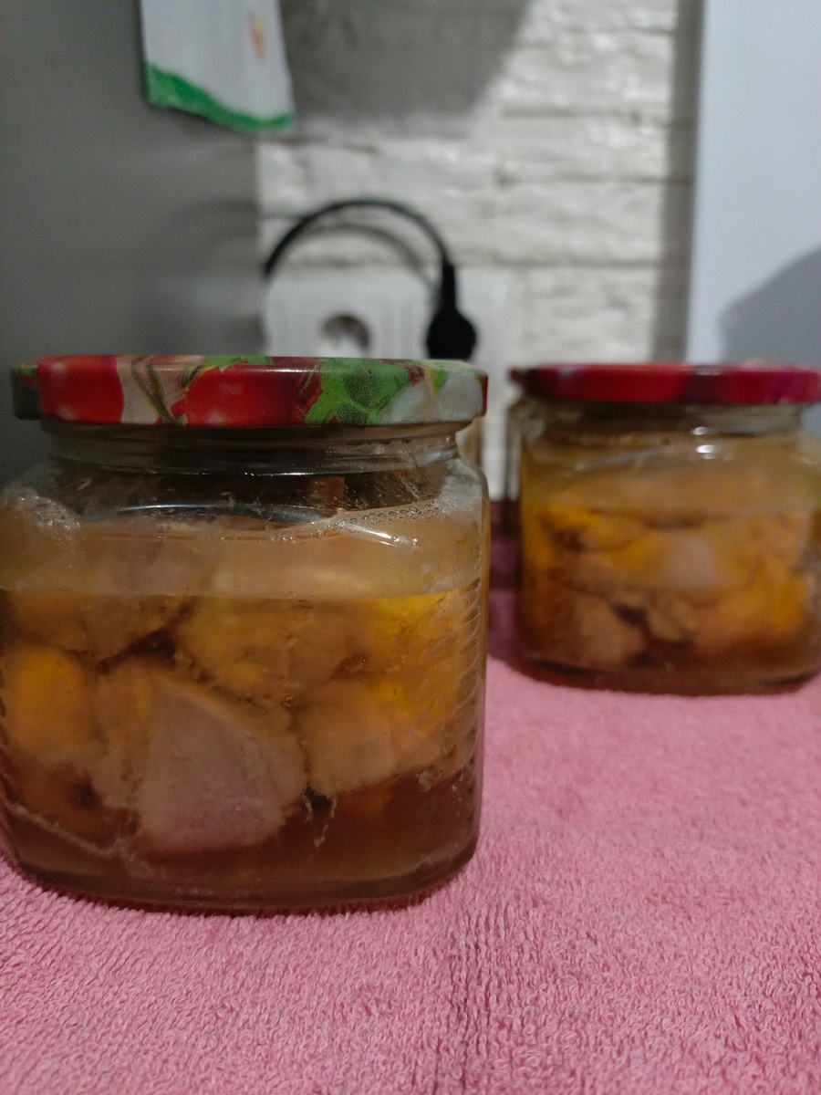 - Расфасовать смесь мяса с морковкой по банкам так, чтобы до крышки оставалось 2см.