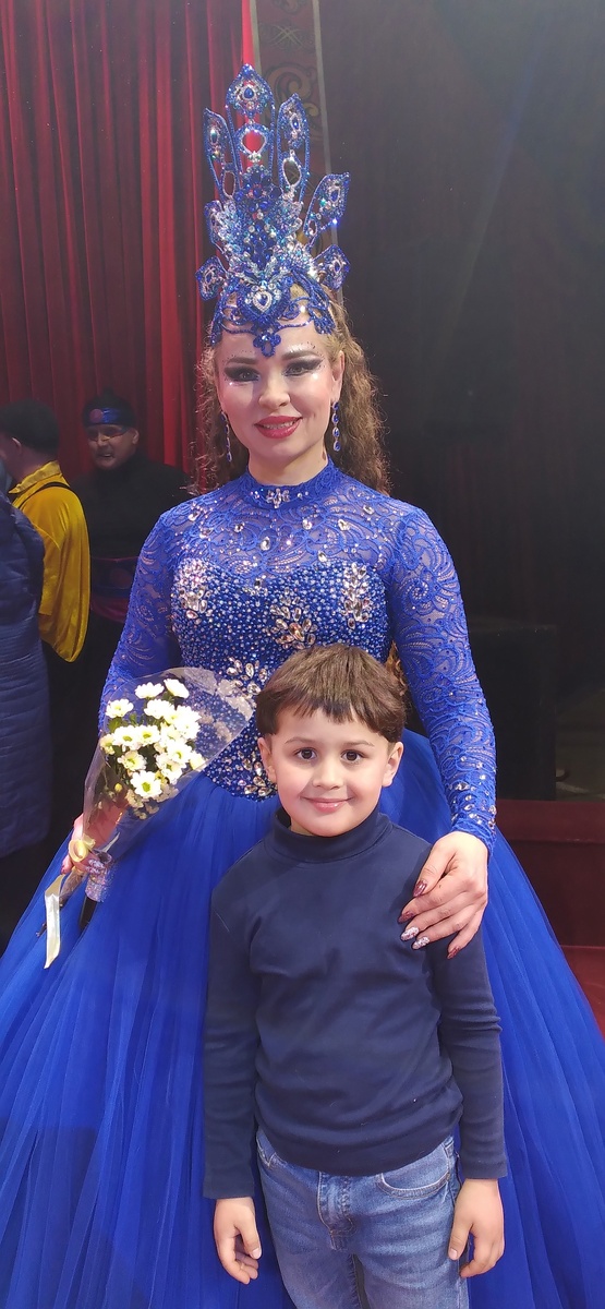 Ну, вот, а в феврале этого года у нас родилась малышка. В новогодний период мы с Мустафо активно посещали Ёлки и даже съездили на трёхдневную экскурсию к разным Дедам Морозам. Понятно, что после рождения дочки, мы значительно снизили нашу активность. Но полностью прекращать посещение различных мероприятий я не планировала. Первый месяц мы, конечно, никуда не ходили. Я только водила Мустафо на тренировки (бассейн и дзюдо) и на прогулки. Мустафо очень любит кататься на коньках. После рождения Аиши, только несколько раз у него получилось сходить на каток со старшей сестрой. Ну, тут ещё и с погодой очень не повезло в прошедшую зиму, часто была плюсовая температура. После того, как дочке исполнилось полтора месяца, я решила попробовать выбраться на какое-нибудь мероприятие. Хотелось сравнительно недалеко от дома, чтобы недолго ехать на метро. И вот как раз приехал цирк-шапито две станции от нас и прям около метро. Мы раньше уже были в этом цирке (это цирк Кудзинов) и Мустафо там очень понравилось. И я решила пойти на представление.