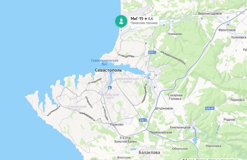 В этой статье побываем в Любимовке, посмотрим на обновлённый памятник-самолёт МиГ-19ПМ. Ну что, давайте посмотрим как выглядит памятник? Статья написана автором канала на Дзен «Прогулки по Севастополю». Копирование или использование материалов без согласования с автором запрещены. Для начала стоит напомнить, что Севастополь разделён бухтой на две части: Северную и Южную. Любимовка находится на Северной стороне города. Это посёлок (но сейчас он считается микрорайоном) в Нахимовском районе Севастополя. Вот карта Севастополя, здесь видно где находится памятник: Добраться до Любимовки можно двумя способами: Есть ещё третий вариант: из Артбухты, на пароме (без машины или на машине) добраться до Северной стороны и дальше продолжить путь на машине или автобусе № 52. Остановка общественного транспорта находится рядом с памятником: И так и называется «Любимовка». Координаты памятника, если кому-то так удобнее: 44.667836, 33.548894 Мы с мужем приехали сюда на машине. Надо ещё отметить, ч