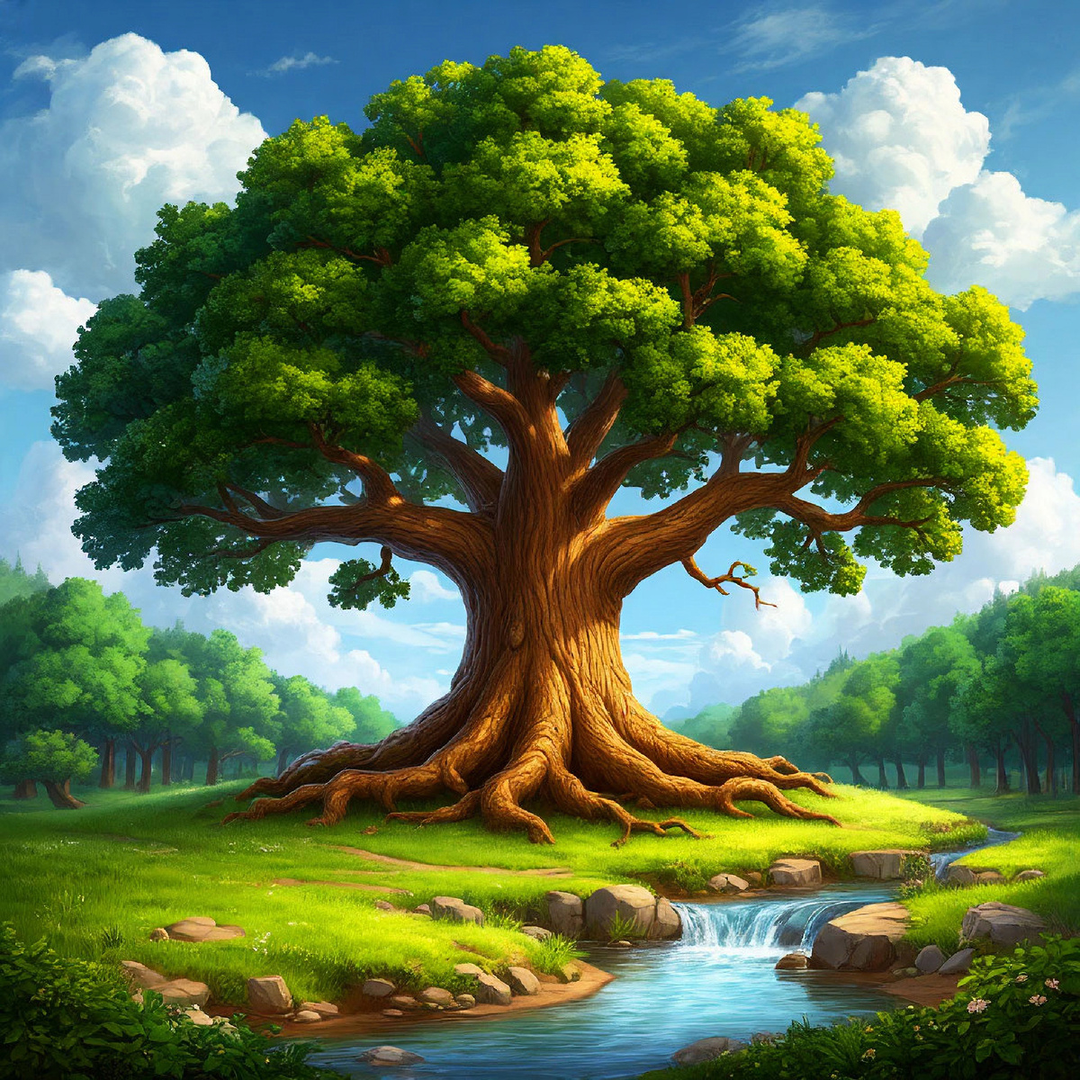 Старый дуб, под которым собирались друзья, был не просто деревом. Он был сердцем леса, его мудрым стражем. Его корни уходили глубоко в землю, а ветви касались облаков. Дуб видел много историй и хранил в себе множество тайн.