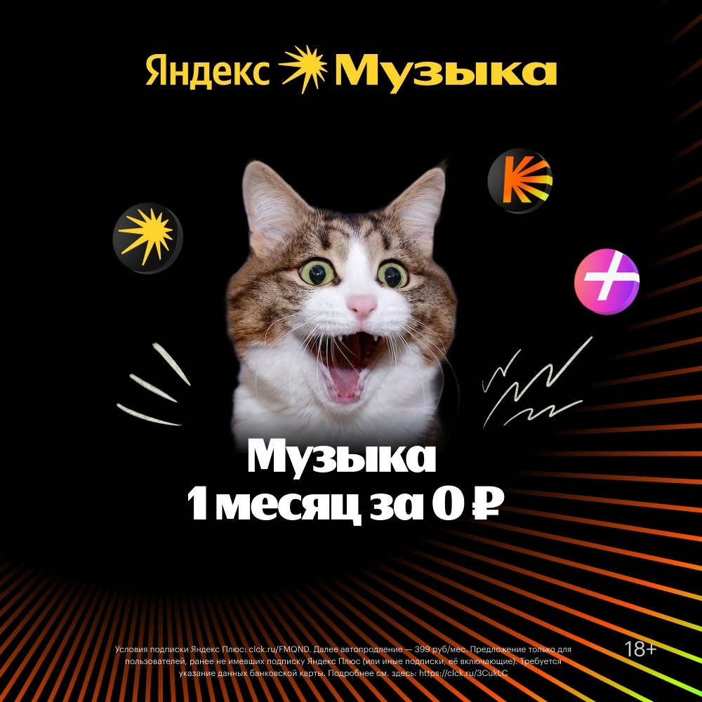 Ого! Вам попался промокод на целый месяц Яндекс Музыки бесплатно! Ваш промокод: F7TL32D4YU Активируйте промокод по ссылке: https://vk.cc/cNbVlS Слушайте любимые треки вместе с близкими на 4 аккаунтах и 10 устройствах. https://vk.cc/cNbVlS