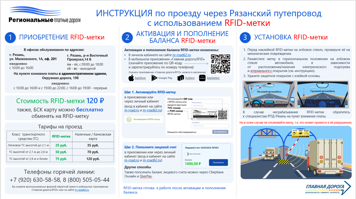 На платном путепроводе в Соколовке заработал безостановочный проезд. Об этом 27 июня сообщила пресс-служба регионального минтранса. Для увеличения пропускной способности платного путепровода в Октябрьском районе жителям и гостям региона предлагается использование RFID-меток на грузовых и легковых автомобилях. RFID-метка — несъемное устройство, располагаемое на лобовом стекле машины. Она предоставляет возможность бесконтактной регистрации проезда транспортного средства через пункт взимания платы без полной остановки. Подробнее о RFID-метках можно прочитать на сайте. Напомним, в 2023 году мэрия Рязани подала иск к собственнику путепровода с требованием сделать проезд в часы пик свободным. Позже стало известно, что контактные БСК карты, которые использовали постоянные пользователи путепровода, заменят на бесконтактные RFID-метки. В апреле 2025 года владелец путепровода в Рязани вновь отложил запуск безостановочного проезда. В мае сообщалось, что рядом с платным путепроводом в Рязани хотят