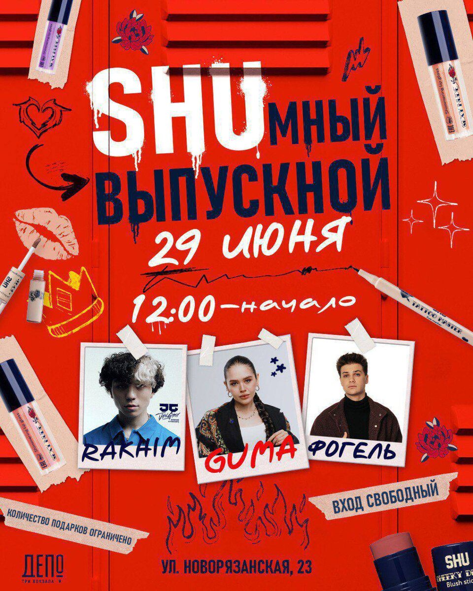 29 июня в «Депо Три Вокзала» состоится SHUмный выпускной, организованный брендом макияжа SHU. Поэтому в программе, конечно, макияж, фотосессии, веселые воспоминания про чудесные школьные годы и знакомство с современными исполнителями — Фогель, GUMA и Rakhim. Кто хотел танцевать? Можно весь день, главное надеть правильную обувь.