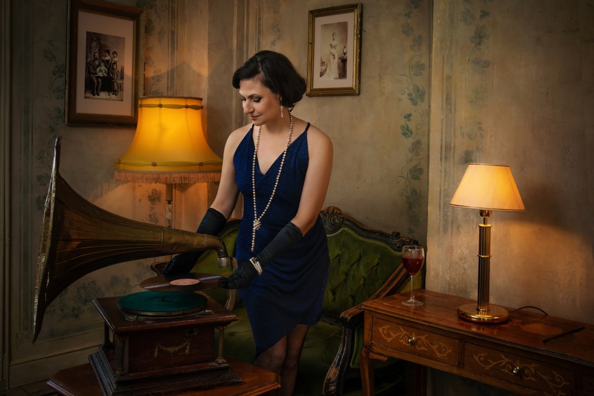 И снова эпоха джаза! Тема, любимая очень многими, она похоже никогда не выйдет из моды в тематических фотосессиях! Патефон был найден в реквизиторской Мосфильма, куда я регулярно наведываюсь в поисках примет эпохи, которые нужны в кадр. Могу взять с собой и вас. Костюмерная и реквизиторская Мосфильма - это целый город из вещей, каждая из хранит истории фильмов, в съемках которых она участвовала. Заказать ретро фотосессию и побывать на Мосфильме momentofbrauty.ru
