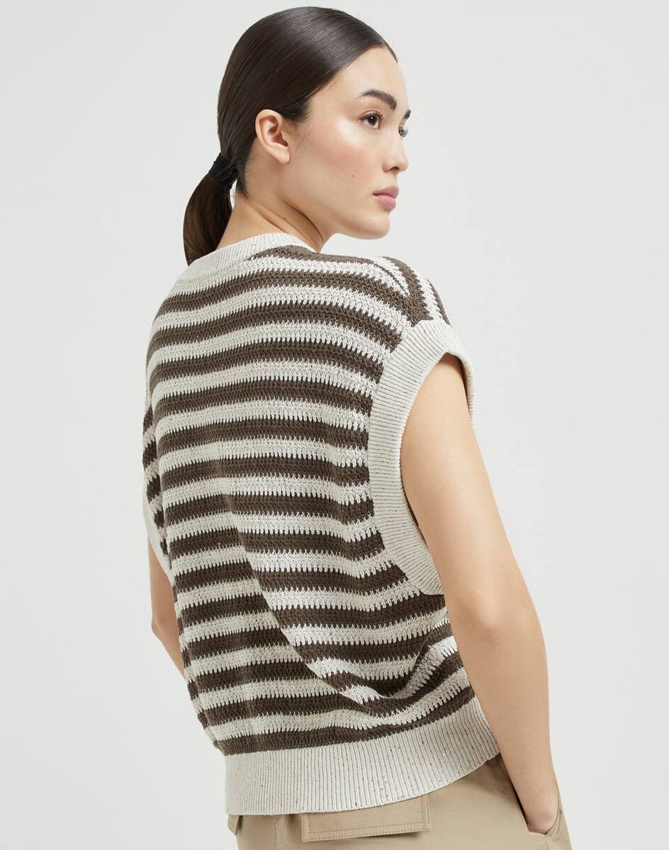 Тренд: вязаная тельняшка Можно вечно смотреть на огонь, воду и на то, как каждое лето модные девушки носят тельняшки. Любимый предмет гардероба Коко Шанель не выходит из моды. Тельняшка – та вещь, которую можно вписать в абсолютно любой стиль. А ее вязаная интерпретация сегодня на самом пике, спасибо тренду на кроше уже третье лето подряд. Из чего вязать? Выбирайте летнюю пряжу и добавляйте полоски с пайетками, сочетайте разные фактуры и узоры, как у Brunello Cucinelli. Что касается цвета, не ограничивайте себя только классическим сочетанием белого и синего, в этом сезоне точно стоит экспериментировать с цветами и создавать уникальные комбинации! Представьте себе тельняшку в нежных пастельных тонах, ярких насыщенных цветах или даже в экстравагантных контрастах! Дайте свободу своему творчеству и настроению! Какой цвет для тельняшки выберете вы? *расход на изделие уточняйте в комментариях WWW.LEPOYARN.RU