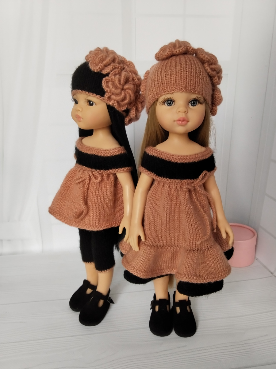 Пряжа - Alize Angora Gold (550 м / 100 гр.) Спицы - № 2. Платье / Туника. Платье без застёжки, вяжем по кругу. Основная нить. Набираем 61 петлю. 1. 1-ю петлю снимаем, дальше вяжем лицевыми петлями распределяя петли на 4 спицы, последнюю петлю провязываем вместе с первой лицевой, замыкая в круг. 2. Изнаночные петли Черная нить. 3 - 6. Лицевые петли 7. (10 лиц., приб.)* 8 - 11. Лицевые петли Основная нить 12. Лицевые петли 13. Изнаночные петли 14. 9 лиц., 15 петель закрыть, 18 лиц., 15 петель закрыть, 9 лиц. 15. 9 лиц., 4 в.п. (подрезы)- мне крючком удобнее, 18 лиц., 4 в.п., 9 лиц. 16. (1 лиц., накид)* - и удваиваем петли и дырочки для поясочка. 16 - 45. Лицевые петли (30 рядов) для платья ! И для туники 26 рядов лицевой гладью и последний ряд изнаночными петлями. 46. Изнаночные петли ( для верхней оборки), оставляем основную нить. Дальше вяжем черной нитью нижнюю оборку 47. Лицевые петли 48. Удваиваем петли - (1 лиц., прибавка)*, ( прибавкой я называю петлю, вытянутую из петли п