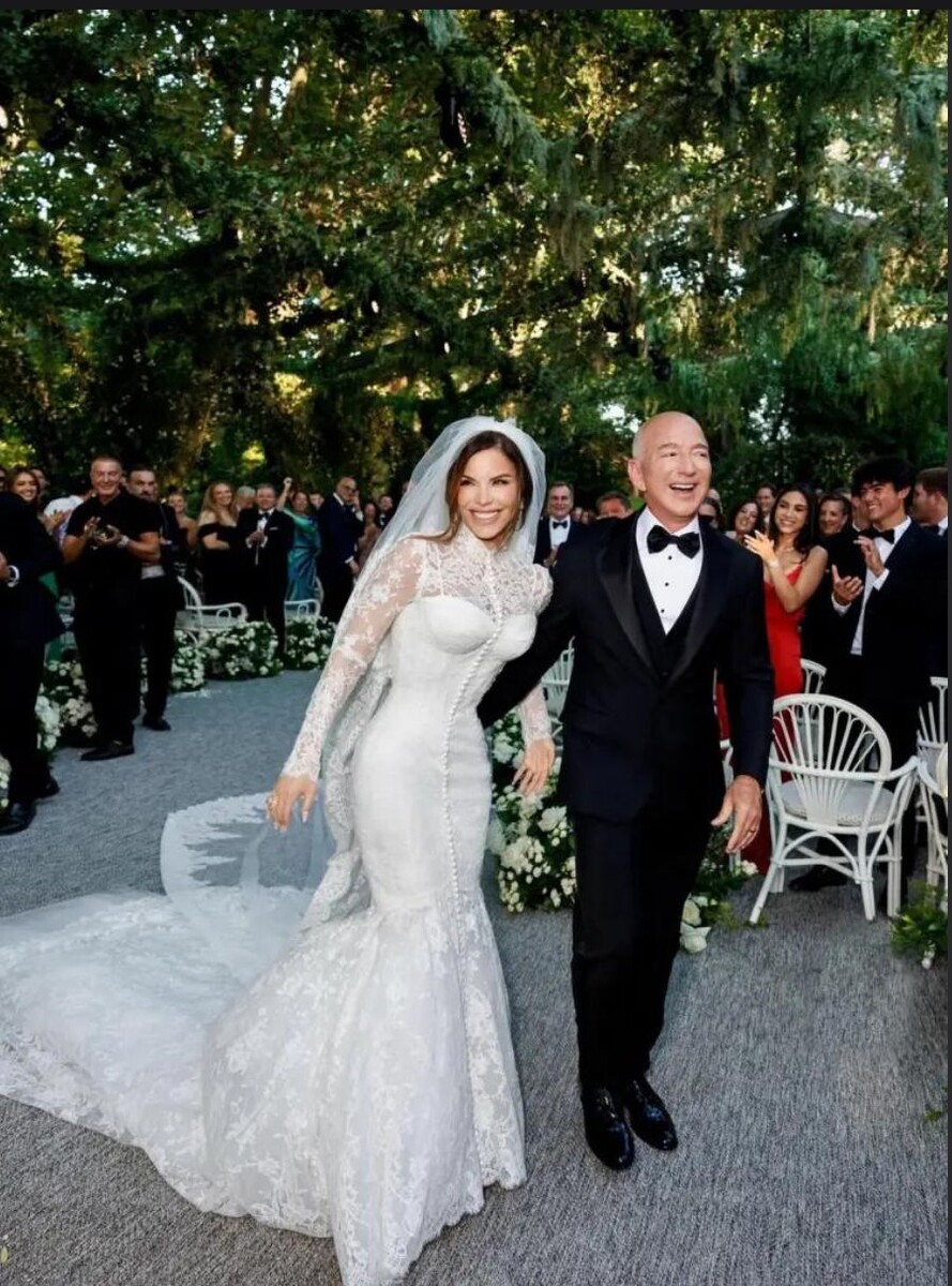 Лорен Санчес, избранница Джеффа Безоса, отказалась от классических «свадебных» решений и выбрала то, что сделали бы Софи Лорен или Элизабет Тейлор, окажись они сегодня невестами миллиардера. Платье — custom Armani Privé, вдохновлённое итальянским кинематографом золотой эпохи.