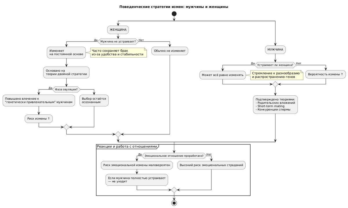 Такое часто бывает, что партнер изменяет на постоянной основе. Для женщины измена чаще является более серьёзным шагом, это больше похоже на предательство. И женщина как раз изменяет «на постоянной основе по причине, что МУЖЧИНА не устраивает, но с НИМ очень удобно в других аспектах». Это подтверждается рядом исследований, особенно в рамках теории двойной стратегии: женщины могут искать «лучшие гены» вне пары, оставаясь с постоянным партнёром ради стабильности Источник: Gangestad, S. W., & Thornhill, R. (2008). Human oestrus. Proceedings of the Royal Society B. https://labs.psych.ucsb.edu/roney/james/other%20pdf%20readings/Thornhill%2520Gangestad%2520Human%2520female%2520orgasm%2520and%2520asymmetry.pdf https://www.psy.uq.edu.au/~uqbziets/Gangestad2008%20Human%20oestrus.pdf Это научно подтверждает, что женщины действительно могут выбирать разных партнёров в зависимости от стадии цикла: стабильно — для заботы и ресурсов, и выборочно — для краткосрочных отношений с целью получить "хорошие