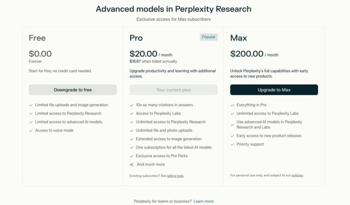 Новый тариф Perplexity Max — это премиум-план за $200 в месяц, ориентированный на профессионалов. В него войдёт доступ к Labs, улучшенным ИИ-моделям, экспериментальным функциям до их официального релиза и приоритетная поддержка.