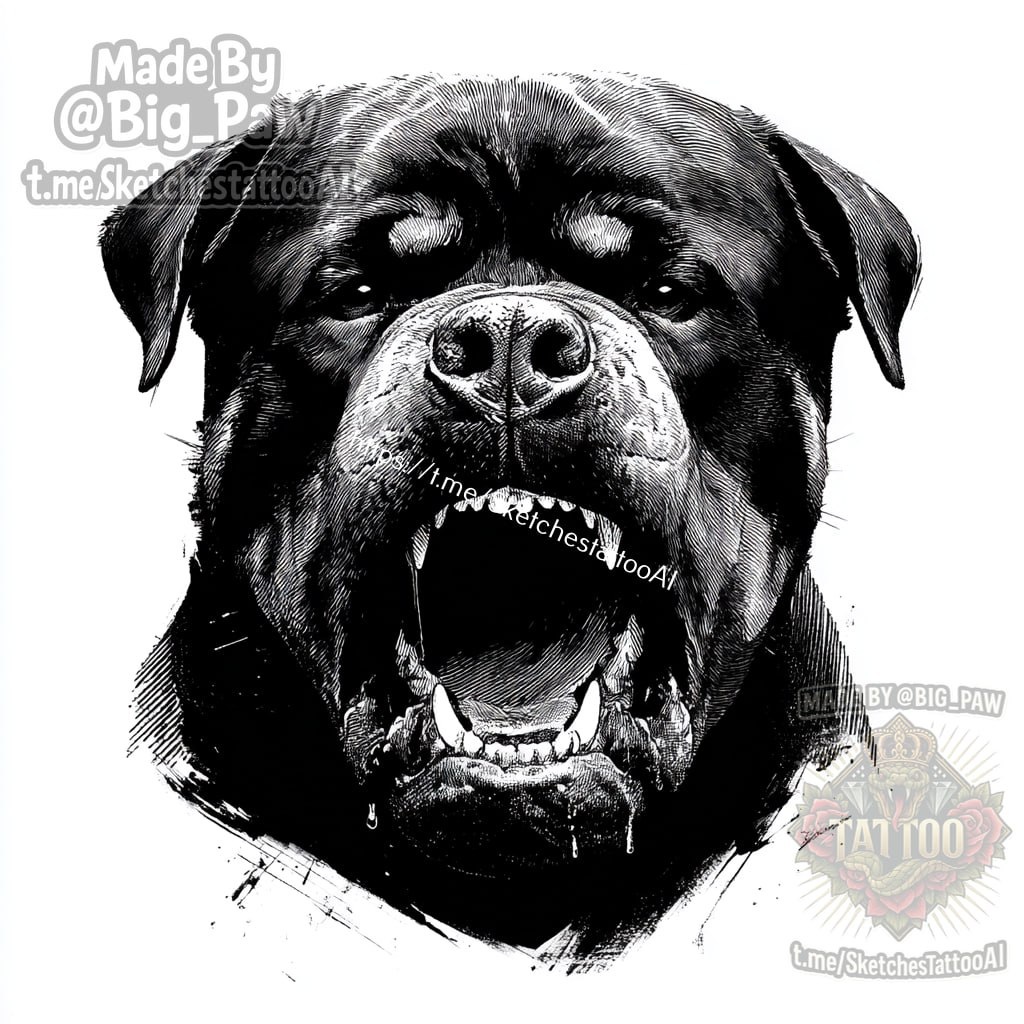 #2556 Подборка по запросу подписчика - морда злого ротвейлера в анфас, на сером фоне, чёрно белый в стиле блэкворк, только голова 🧠 SYNTX 💳 Донат 😎 НейроБро 😎 Эскизы без вотера 💀 Эскизы от нейросети #ротвейлер #портрет #блэкворк