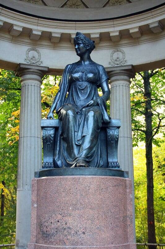 Сегодня были в Павловске, навещали Марию Федоровну. Вот эта вот скульптура, благожелательно обернувшаяся к входящим, если они, конечно, направляются от Театральных ворот, принадлежит авторству Владимира Беклемишева.