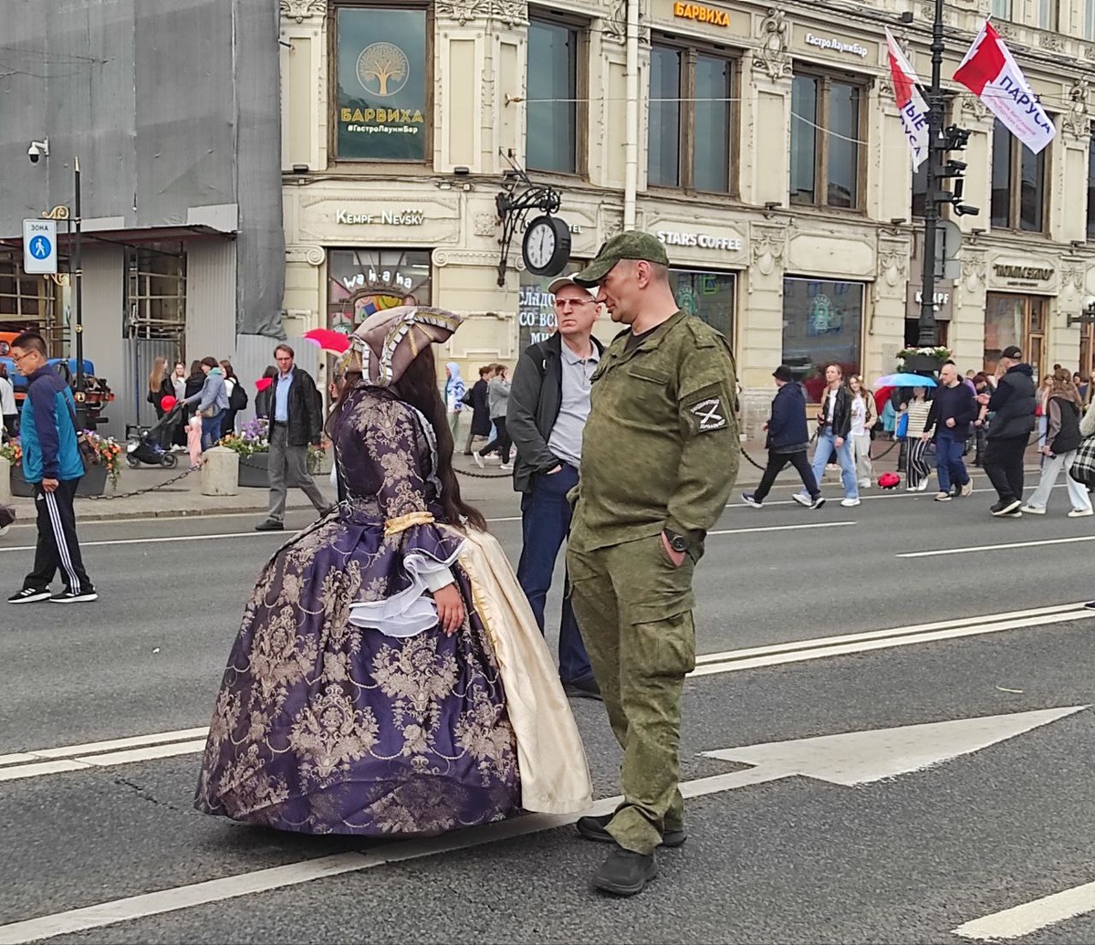 Жители Северной столицы ждут праздника выпускников. В субботу, 28 июня, Петербург замер в ожидании «Алых парусов». На центральные улицы вышли вчерашние школьники, местные жители и гости города, актёры в костюмах прошлых веков и военные. Так, на Невском проспекте корреспондент «Форпоста» заснял встречу «фрейлины» в платье с кринолином и мужчины в форме цвета хаки. Некоторое время спустя последний также пообщался с парой «гусаров». В центре Северной столицы можно заметить людей, «выгуливающих» надувных божьих коровок. Молодой человек рассказал журналисту, что наполненных воздухом насекомых соорудил его друг из Анапы — он собирается их продавать. Предпраздничную прогулку дополняют уличные музыканты. Они исполняют хиты русского рока — композиции групп «Сплин», «Наутилус Помпилиус», «Король и Шут», «Кино» и других. В это же время на Малой Конюшенной показывают кукольные спектакли и устраивают танцы с бубнами в рамках фестиваля синтетических театров. На мосту через канал Грибоедова установил