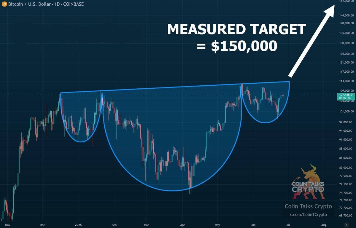 А быки из Twitter активно обсуждают идею из классического ТА – формирование ПГиП с целью 150,000$ за #BTC.