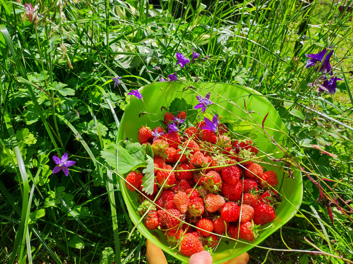 И ее ковшик земляники. Похоже, они ее не любят. Хотя, там больше запах, чем еда.