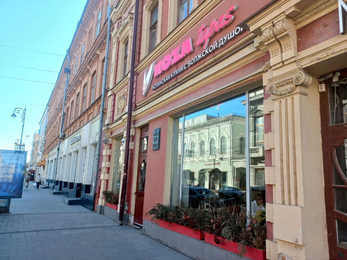 Обычно люди выбирают для посещения грузинские рестораны (хинкали, хачапури, оджахури и т.д), итальянские кафе (пицца, пасты с соусами) или доставку суши. Я решила попробовать блюда трех других стран. Рассказываю: Честно скажу, поленилась узнать, почему именно коза. Думаю, дело в том, что это символ Самары. А тапас - это бутербродики. Но начнём по порядку. Небольшой ресторанчик (меньше чем на десяток столов) в исторической части города. Никакого особо испанского колорита я не заметила, но я и в Испании не была. Поэтому как русских представляют в ушанке и с балалайка, в испанском заведении я ожидала увидеть что-то связанное с тореодорами. Но внутри просто милый терракотовый интерьер. Тарелки в нежных цветочками, скатерти, декор на столах. Из меню я выбрала одно блюдо и закуску. Итак, на горячее я впервые попробовала паэлью. Сначала показалось, что маловато морепродуктов, но оказалось - в самый раз. Такие мягкие кальмары, сочные креветки, нежные мидии, и все это с рисом и овощами - точно