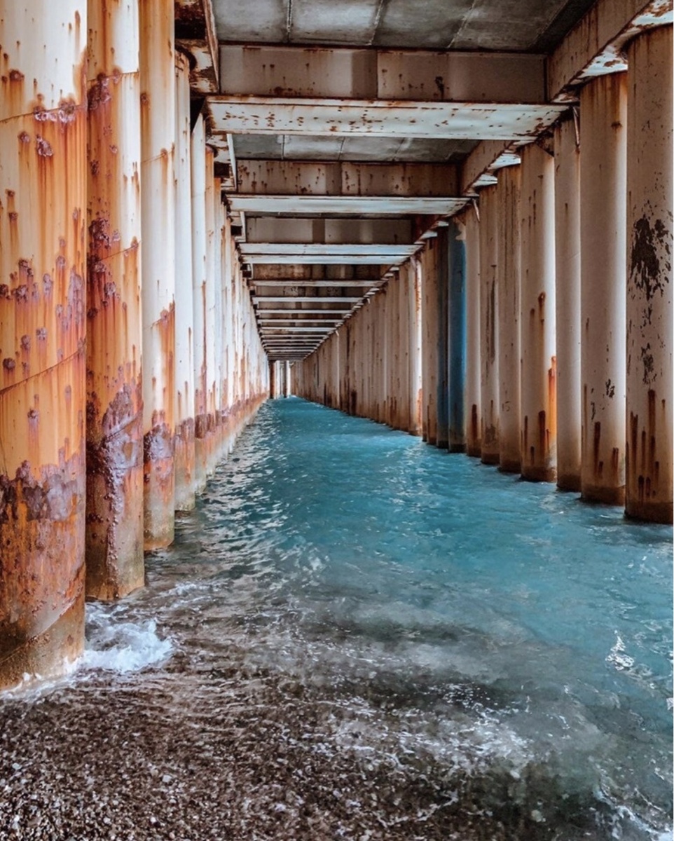 Гранж-фотографы, это для вас! Заброшенный пирс – место, где время оставило свой след, и каждая деталь дышит тайной. Ржавые узоры на синих сваях, мощные волны, бьющиеся о грубые опоры – все это создает неповторимый урбанистический пейзаж. Пасмурный день – лучшее время для съемки: контраст темных свай и морской пены на фоне серого неба делает фотографии невероятно выразительными. Как добраться? Подойти к опорам можно с пляжа «Sochifornia», находится он в Адлере рядом с улицей Цветочная. После входа на пляж нужно повернуть на лево, где лежат цветные камни и пройти примерно 100 метров до металлических опор поддерживающих Имеретинский порт. Думаю нет смысла долго расписывать место, нужно просто ехать и делать свои крутые фото.