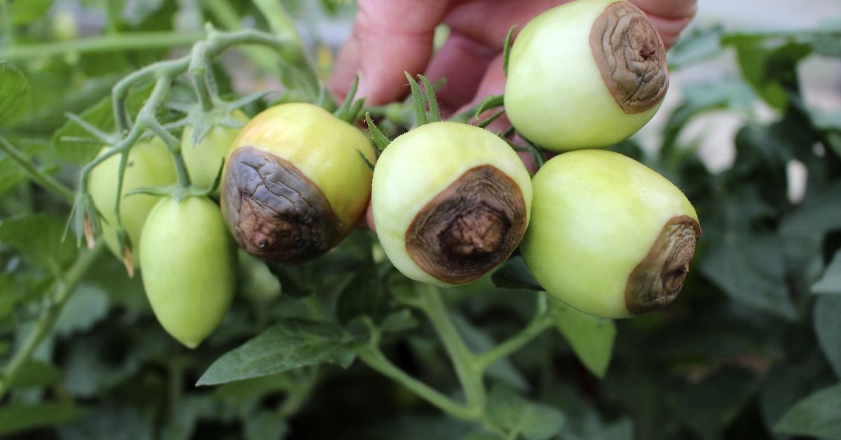 Реже всего вершинная гниль проявляется на томатах из-за высокой загруженности кустов, когда растения просто не могут прокормить всю завязь. Еще реже болезнь поражает урожай при его малочисленности, хотя ситуации подобные бывают. Проблема кроется в том, что, когда плодов мало, куст их усиленно взращивает, а кожицы кальций скопить не успевают, вот и обнаруживаем мы вершинку. Тоже самое происходит при сухом воздухе в теплице. Систематично теряющие тургор листья, периодически поникающие макушки и желтизна – сигнал о скором проявлении болезни. Следует искусственно поднимать влажность путем опрыскивания и установления бочек с водой.