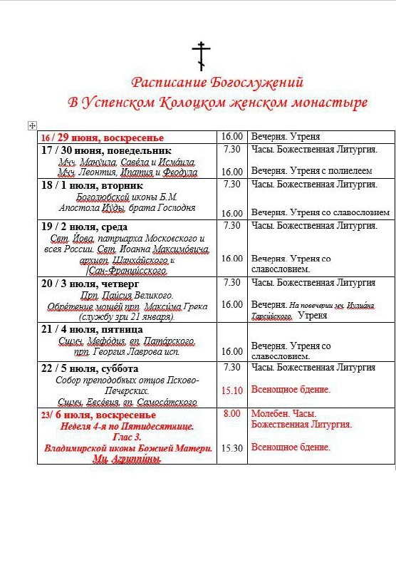 #расписание@kolockiymonastyr КОЛОЦКИЙ МОНАСТЫРЬ