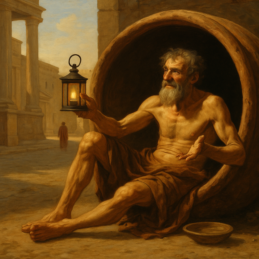 Подводя итог, можно сказать, что Диоген Синопский остался в истории как первый «панк» и вечный оппонент условностей. Его бочка громче любого мегафона прокричала миру о ценности простоты и свободы. Конечно, не призываем подражать ему во всём – вряд ли ваши соседи оценят, если вы решите жить на помойке и философствовать в обнажённом виде зимой. Но дух Диогена – дух независимости мысли, иронии к самому себе и презрения к пустым условностям – актуален и сегодня. В суетном мире потребления иногда стоит вспомнить старика с фонарём, который среди бела дня искал настоящего Человека. Может, начав с самих себя, мы поможем ему в этих поисках. Ведь, как гласит эпитафия, слава Диогена не тускнеет с веками – а значит, нам всё ещё есть чему у него поучиться.