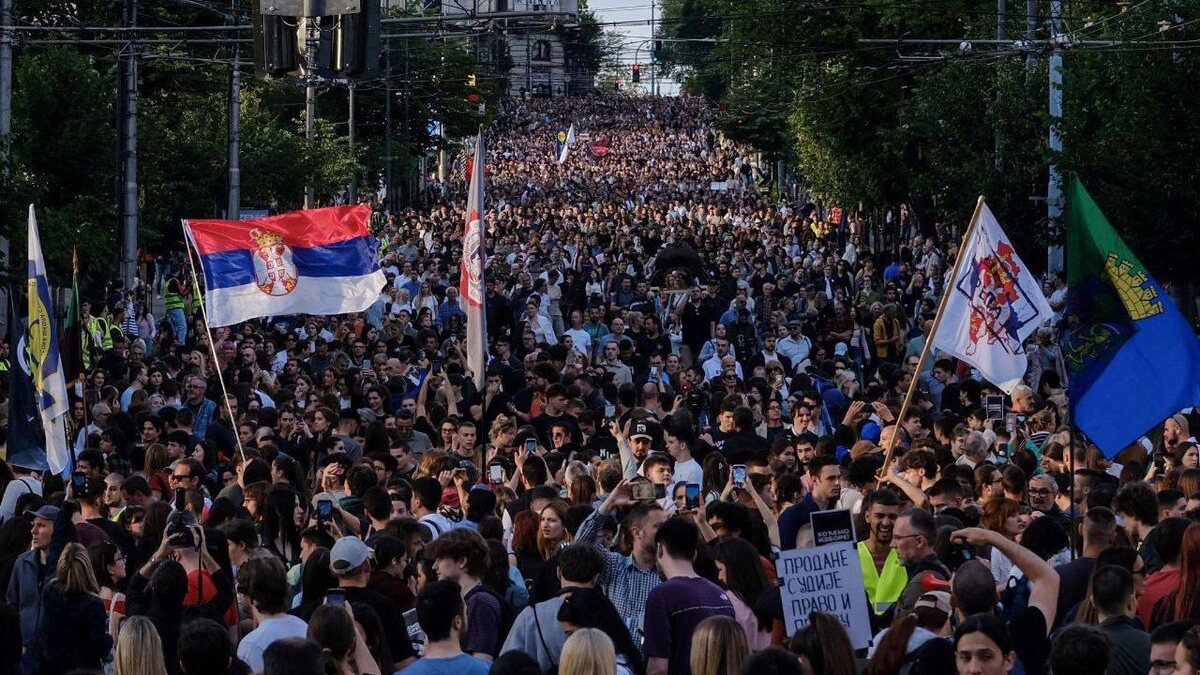 В Белграде проходит массовый протест против оружейного барона Вучича.