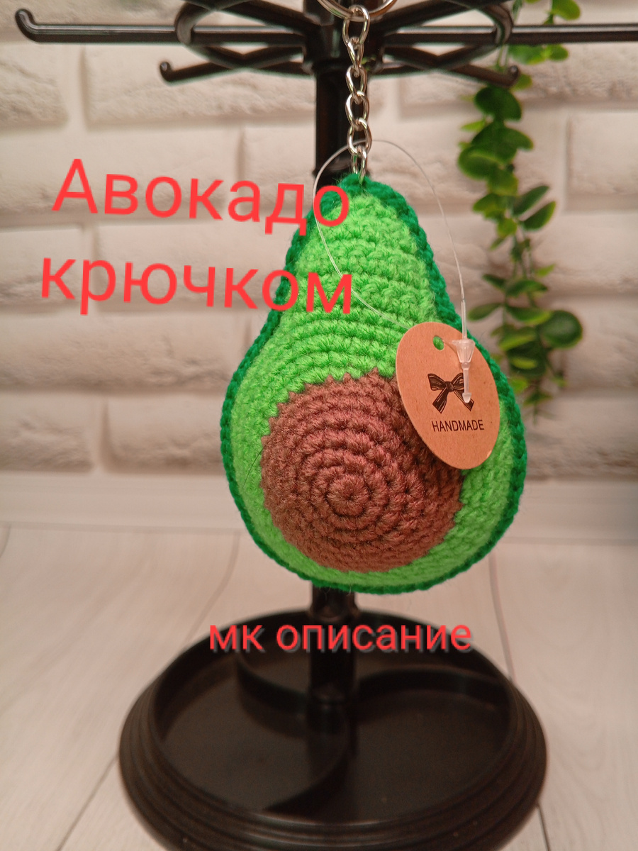 Как связать авокадо брелок крючком Всем здравствуйте! Сегодня предлагаю Вам связать такое авокадо. Это может быть брелком, обвесом или просто игрушка в коллекцию еды. Описание из интернета от автора @ma_mashkina. Вам описание, а мне в копилку) Вяжется без сложностей, справится и новичок. Начинаем, Всем хорошего настроя!) Материалы: пряжа может быть любая и подходящий крючок. Я вязала из пряжи *детская новинка* и крючок у меня 2,5. Получился брелок 10см. Понадобиться наполнитель. По желанию Вы можете использовать еще и глазки. Коричневая и зеленая полусферы (косточка и мякоть) 1р. 6сбн в КА 2р. 6пр (12) 3р. (1сбн, по)*6 (18) 4р. 1сбн, (пр, 2сбн)*5, пр, 1сбн (24) 5р. (1пр, 3сбн)*6 (30) 6-7р. 30 сбн (для зелёной мякоти провязать еще и 8-ой ряд сбн) Мякоть обеих половинок 1р. Где косточка (выпуклая), вяжем за переднюю стенку петли, а где мякоть (вогнутая)-за заднюю: 2сбн, (пр, 4сбн)*5, пр, 2сбн (36) 2р. Этот и последующие ряды за обе стенки: (пр, 5сбн)*6 (42) 3р. 3сбн, (пр, 6сбн)*5, пр,