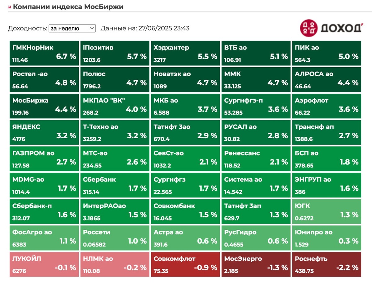 Индекс Мосбиржи за неделю: 2%, с начала года: -2,67%