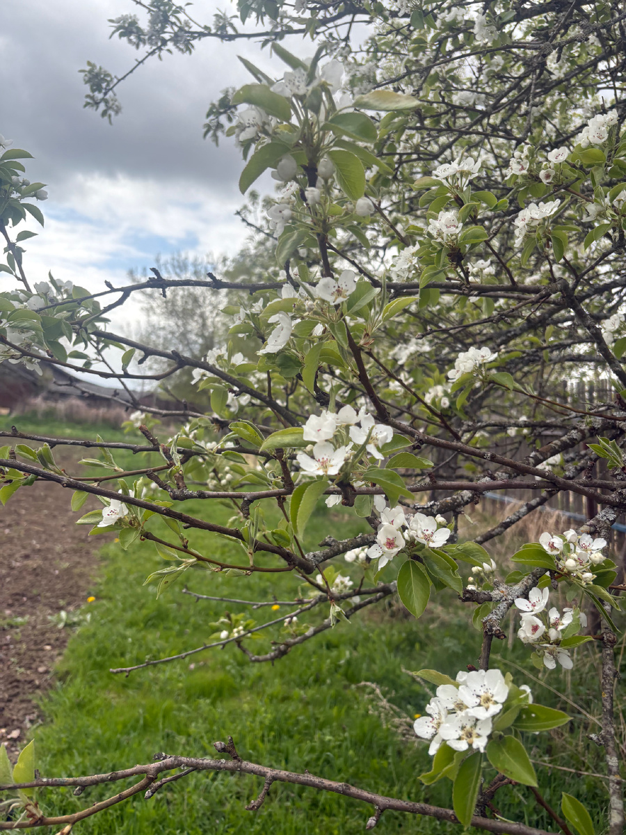 В нашем огороде растут потрясающие груши, цветение которых вы можете наблюдать на фото выше. Но я , честно, не любитель груш, могу пару - тройку съесть, иногда пирог испеку, в общем -то и все.