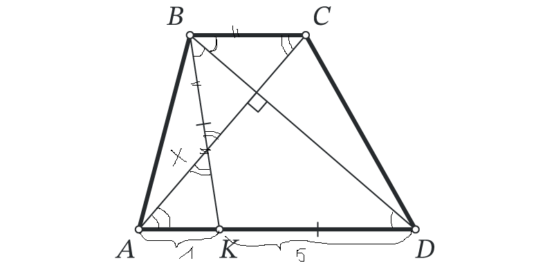 Рассмотрим треугольник ХВС - он равнобедренный. В BDK углы В и D равны (KB=KD), вторая половинка в ХВС тоже равна D, потому что AD∥BC.