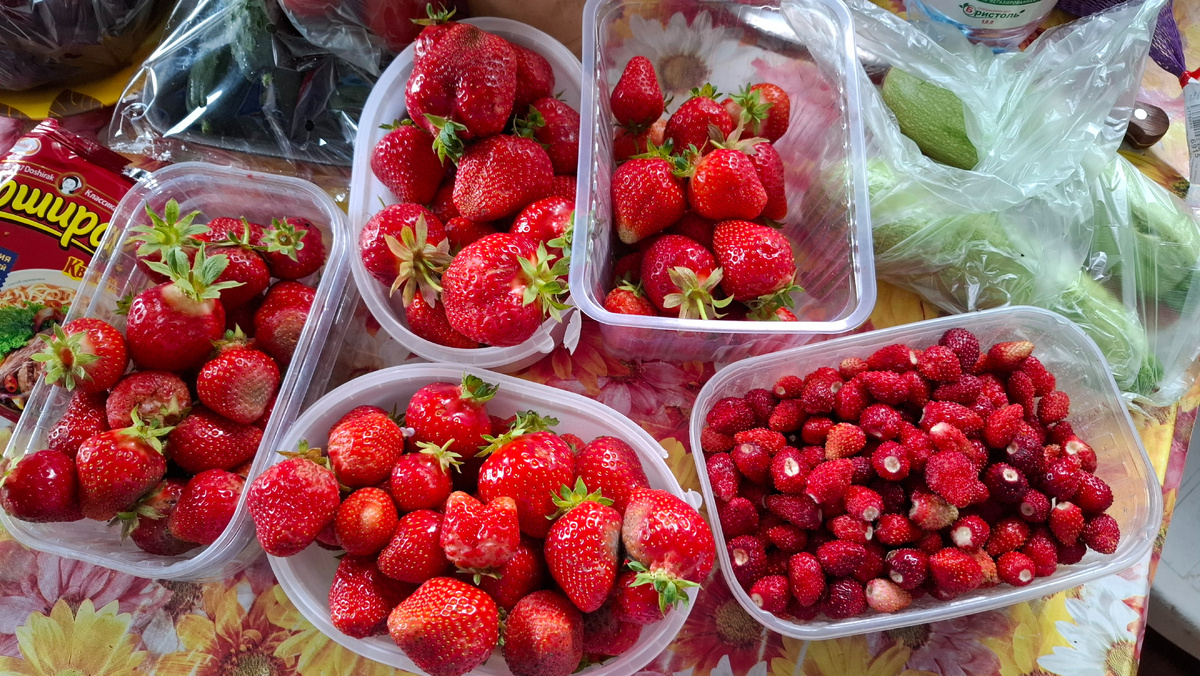 На ппошлых выходных пока собирала ягоду, выбросила много порченных - серая гниль разбушевалась под дождями. Это был субботний сбор, одна плошка слева с подпорчеными бочками - пошла в варенье после обрезки. Те, что оказались нетронутыми - загляденье! Одну большую я сначала съела, а потом подумала, что стОит взвесить, взвешивала оставшуюся - 50 грамм, приличные. И ароматная земляничка не отстаёт! Её с каждым днём как будто больше, и вся в цветах стоит. Это уже сегодня, порченных почти не осталось, хорошие ягоды ещё спеют. Тоже хороший размер для сорта, а ароматные! И сладкие, как будто их сахаром посыпали. А ниже житель ягодника, уже 3ю неделю его там встречаю, наверно, привык ко мне😁 Крупный, жирненький красивый серый кузнечик, я таких крупных ещё не встречала.