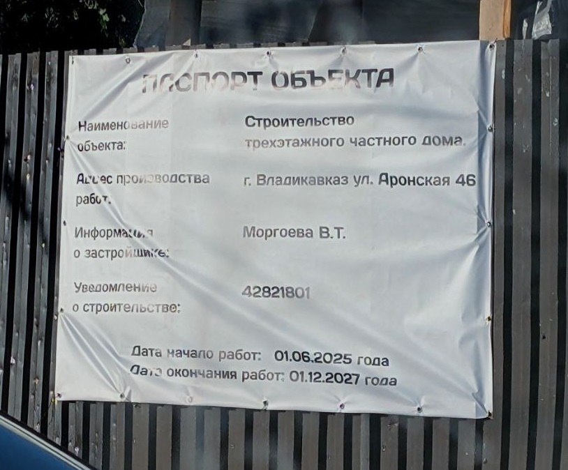 В ответ на пост После того как Минстрой направил в прокуратуру обращение с требованием проверить незаконное строительство на пересечении улиц Ардонская и Плиева, на объекте оперативно появился паспорт, в котором указано, что строится трёхэтажный дом. Комментарий @OssetiaFB: «Владикавказ помнит много таких заявленных трёхэтажных домов, которые потом быстро вырастали до девяти этажей, а постфактум легализовывались через выплату символического штрафа».