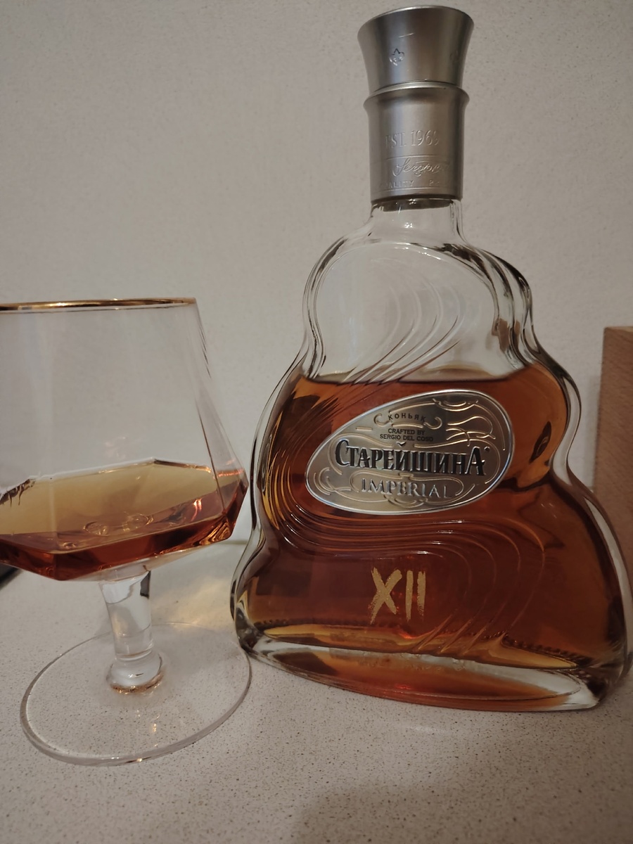 - Чрезмерное употребление алкоголя вредит вашему здоровью. Алкоголь противопоказан детям и подросткам до 18 лет, беременным и кормящим женщинам, лицам с заболеваниями центральной нервной системы, почек, печени и органов пищеварения. Ave, квириты! На обзоре коньяк «Старейшина Imperial», 12 лет. Изготовитель ООО «Алвиса». Наверное. Самый известный коньяк, один из, по крайней мере. Прикладываю сразу линейку коньяков, их там огромное количество (https://www.alvisa.ru/page/brands?type=5). Обязательно все попробуем. Описание с сайта. Старейшина IMPERIAL 12 лет создан из коньячных дистиллятов, выдержанных не менее 12-ти лет. Глубокий янтарный цвет с темно-золотистыми искрами подчеркивает великолепие и гармонию букета старого коньяка, наполненного насыщенными тонами сухофруктов, изюма и ванили. Состав: коньячный дистилляты, выдержанные не менее 12 лет вода подготовленная (исправленная) питьевая, сахар белый, краситель – сахарный колер I простой (Е150а). Сорта винограда: Ркацители, Совиньон. Б