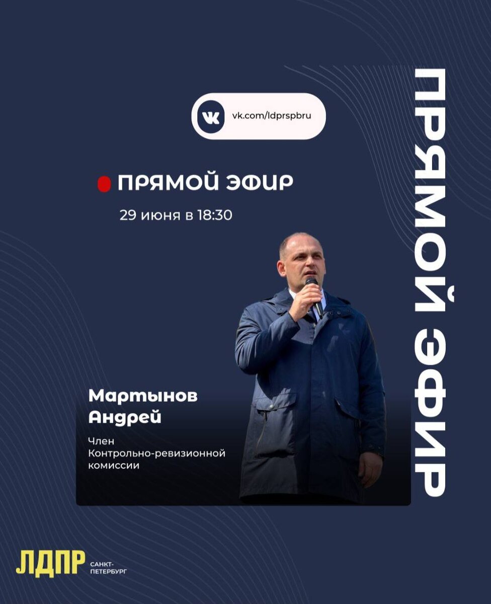 Прямой эфир: «Память и благодарность ветеранам боевых действий» Приглашаем вас на разговор о героизме и памяти! 📅 29 июня ⏰ 18:30 🎤 Спикер: Андрей Мартынов, член Контрольно-ревизионной комиссии, обсудит тему: «Память и благодарность ветеранам боевых действий – герои среди нас». Мы поговорим о важности сохранения памяти о ветеранах, об их вкладе в нашу жизнь и о том, как мы можем выразить свою благодарность за их мужество и самоотверженность. Подключайтесь и задавайте свои вопросы! 🔗 Мы ВКонтакте 🖥 Сайт ЛДПР | Санкт-Петербург