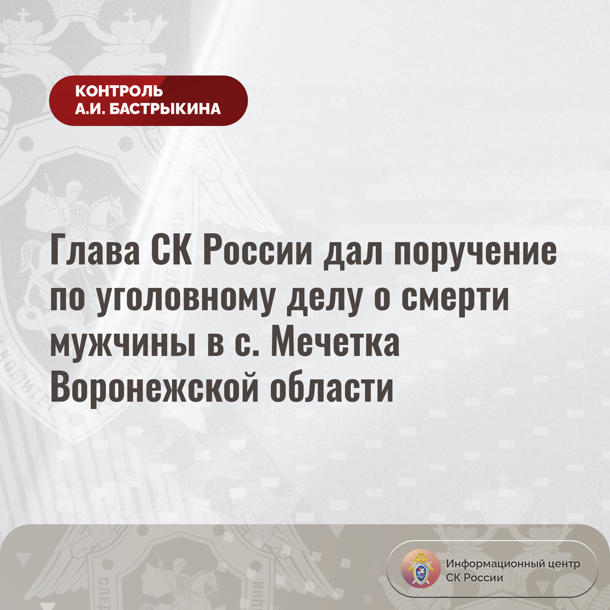 Глава СК России дал поручение по уголовному делу о смерти мужчины в с. Мечетка Воронежской области
