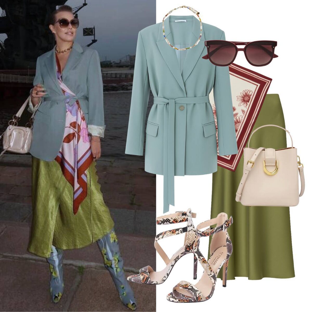 А когда мы с вами последний раз селебрити косплеили? Сегодня предлагаю разобрать и повторить образ — Ксении Собчак. Не знаю, составила ли она его сама или обратилась за помощью к стилисту, но результат действительно впечатляет. Видна грамотная игра на контрастах и акцентах, что делает образ уникальным и запоминающимся Если взглянуть на отдельные вещи, может возникнуть вопрос: как они могут сочетаться? Например, болотная юбка и серо-голубой жакет, на первый взгляд, кажутся несовместимыми. А тут еще и яркий платок, который только сильнее усложняет задачу. Однако образ получился очень стильным и гармоничным Это наглядно показывает, что при составлении образа важны не только знания модных правил, но и насмотренность. Чем больше вы видите и анализируете, тем легче вам будет комбинировать вещи. В итоге картинка в голове складывается намного быстрее и проще! Как вам этот образ Собчак? Повторяем? Ссылочки на вещи из образа в моем канале