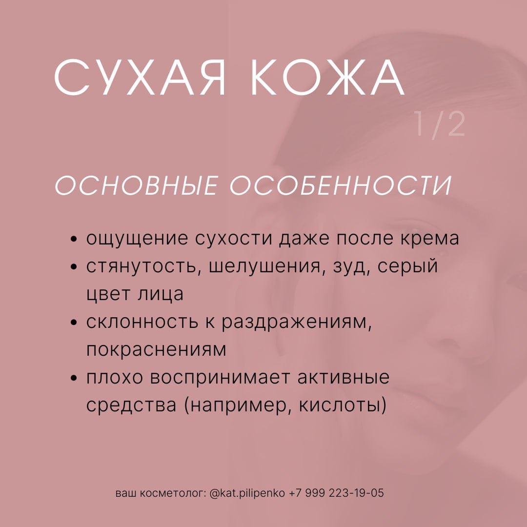 Почитать подробнее 🔸 Карбокситерапия и молочные пилинги — мягко стимулируют обновление кожи и повышают её гидратацию Сухая кожа — это не «проблема», а особенность. И с ней можно прекрасно жить, если подобрать грамотный домашний и кабинетный уход. Тогда кожа перестаёт «просить помощи» — и становится вашей спокойной, ухоженной базой. Понравилась статья? Подпишитесь, чтобы не пропустить следующие разборы — будем вместе разбираться в нюансах ухода за разными типами кожи.