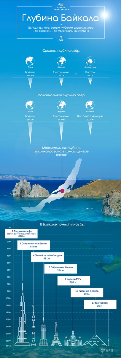 Самое глубокое место в России — это озеро Байкал, расположенное на границе Иркутской области и Республики Бурятия. Байкал не только самое глубокое озеро России, но и всей планеты: его максимальная глубина достигает 1642 метров, что почти вдвое превышает высоту самого высокого небоскрёба в мире — Бурдж-Халифа. Эта глубина была зафиксирована в 1983 году и подтверждена в последующих исследованиях, в том числе в начале XXI века с помощью современных методов эхолокации и сейсмического профилирования. Байкал — уникальный природный объект, возраст которого оценивается в 20–30 миллионов лет, что делает его одним из древнейших озёр на Земле. Водоём содержит примерно 20% всех пресных поверхностных вод планеты, а его экосистема отличается исключительным биоразнообразием. В Байкале обитает более 1700 видов животных, из которых две трети эндемичны, то есть не встречаются больше нигде в мире. Географически максимальная глубина озера находится примерно в 25 километрах к юго-востоку от мыса Хобой на о