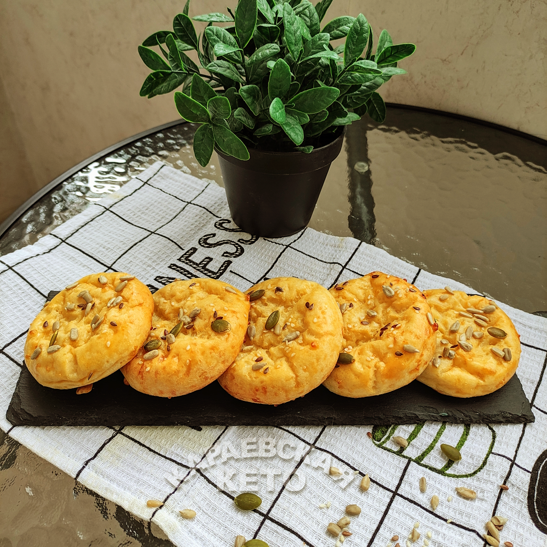 Смесь семян для посыпки (не обязательно) Творог и яйца смешать погружным блендером до однородной массы. Добавить натертый сыр и сухие ингредиенты. Перемешать.