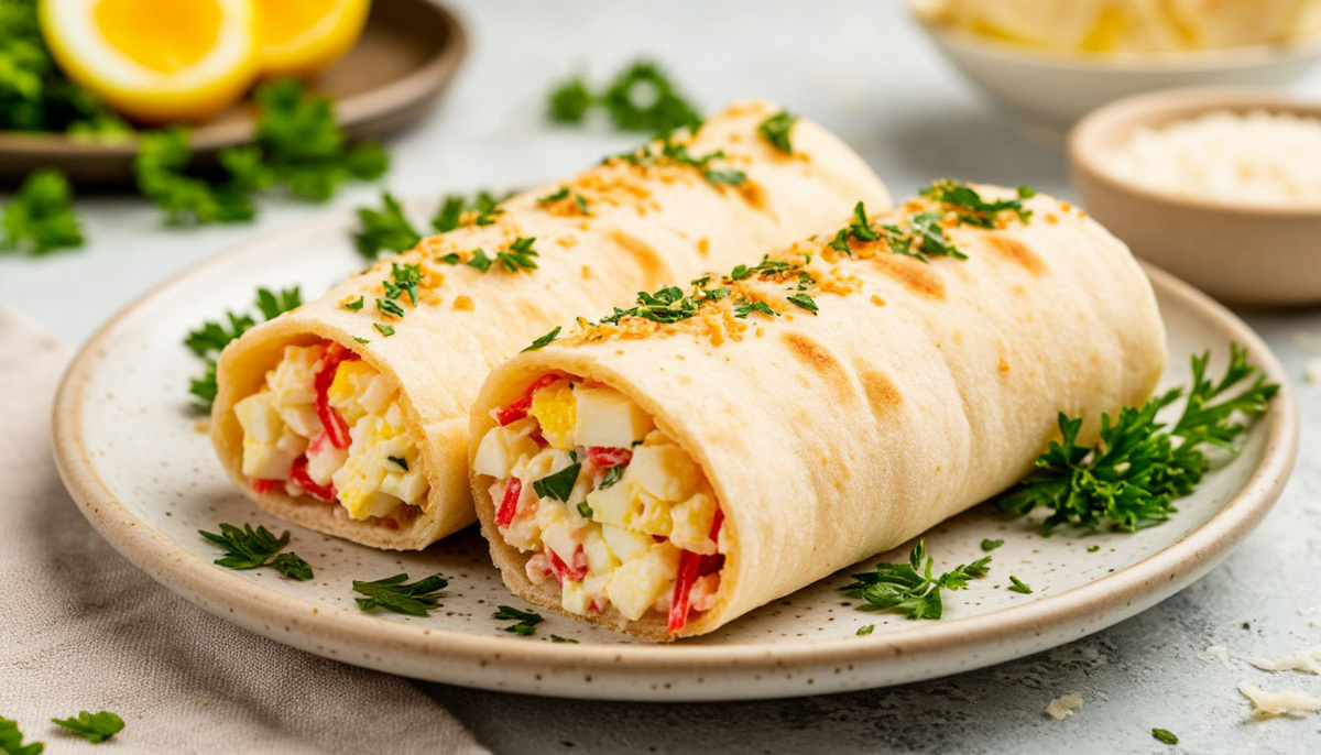 Если вы ищете быстрый и вкусный рецепт закуски или перекуса, рулет из лаваша с крабовыми палочками — отличный выбор. Этот рулет идеально подходит для праздничного стола, пикника или повседневного перекуса. В моем пошаговом рецепте и подробным описанием вы легко приготовите ароматный и нежный рулет, который понравится всей семье. Рецепт рассчитан на 3-4 порции. Отварите яйца вкрутую (примерно 8-10 минут после закипания), затем охладите их в холодной воде и очистите от скорлупы. Натрите крабовые палочки на крупной тёрке или разберите их на волокна с помощью тупой стороны ножа. Это придаст начинке нежную текстуру. Натрите очищенные яйца на мелкой тёрке, чтобы они равномерно распределились в начинке. Разложите лист лаваша на ровной поверхности. Смажьте его майонезом тонким слоем. Выложите ровным слоем натёртые крабовые палочки. Снова смажьте слой майонезом, сверху равномерно распределите натёртые яйца и мелко нарезанный зелёный лук. Аккуратно сверните лаваш с начинкой в плотный ру
