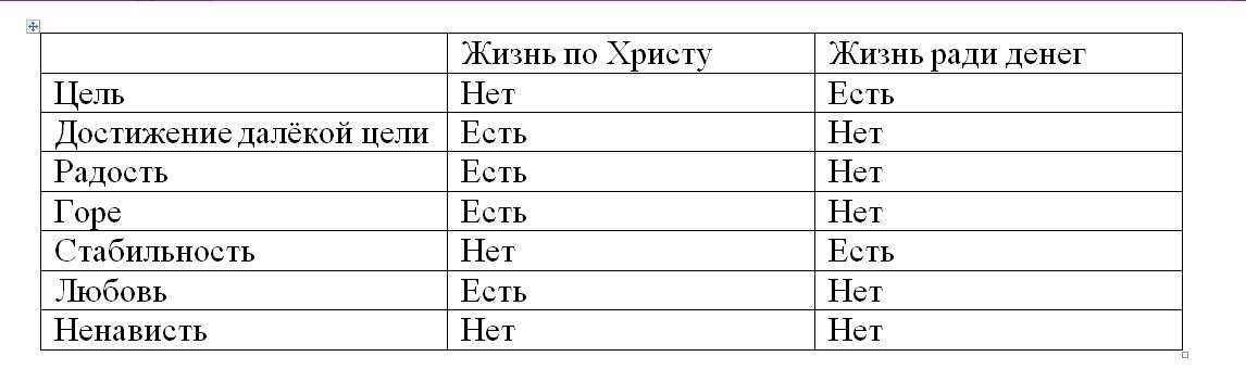 Вот и выходит, что жизнь ради денег единственная модель, которая дарует цель. Жизнь по Христу это одни слёзы, жизнь во имя денег это стабильность. Пускай, ты не достигнешь того о чём мечтаешь, но зато у тебя будет в жизни цель.