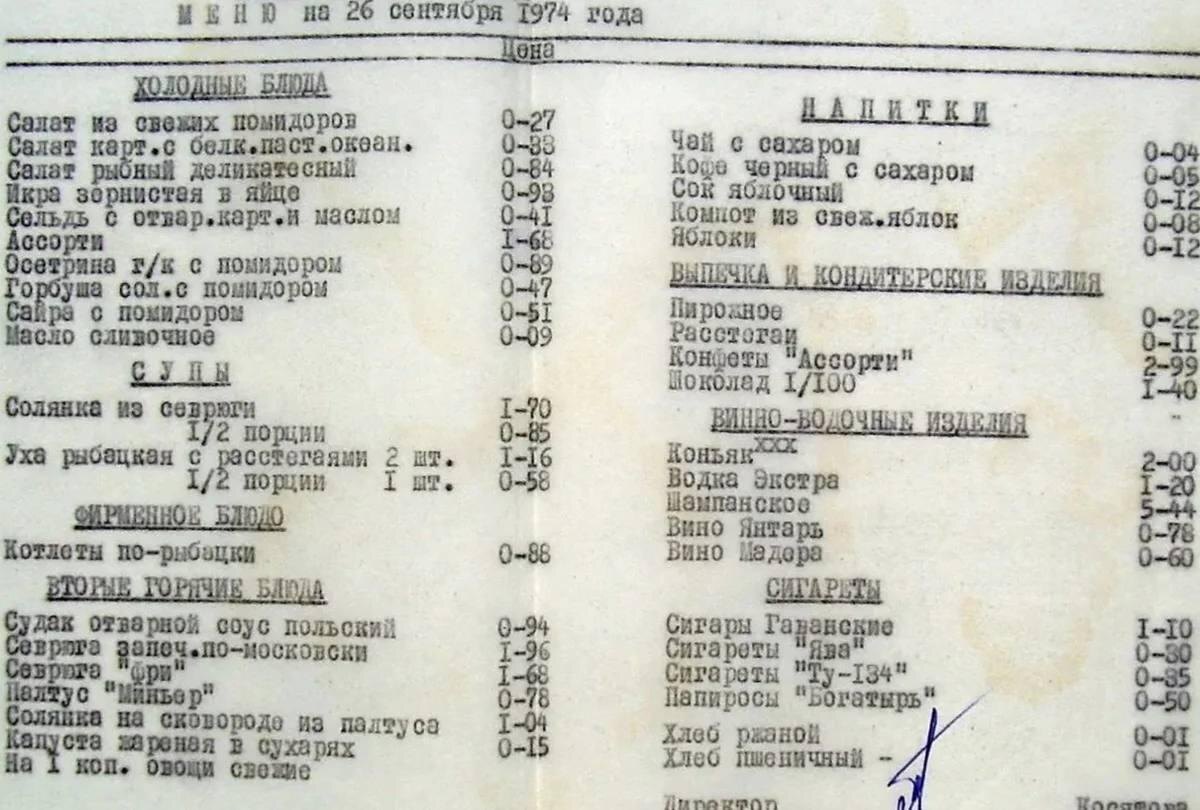 Обнаружил в интернетах вот эту картинку. Это цены в советских ресторанах в 1976 году. Средняя зарплата рабочего в 1974 году составляла 128,46 руб. Как видим, цены более чем несерьезные. Только я бы не стал этим особенно умиляться. Потому что обед в ресторане в состав товаров первой необходимости не входит. Так что вполне можно было цены и повыше сделать, чтобы побольше денежек заработать. Для модернизации экономики и повышение возросших потребностей советского человека. Тем более, что простой советский рабочий попасть в этот самый ресторан обычно не мог. Швейцары не пускали. Потому что почти всегда там свободных мест не было.