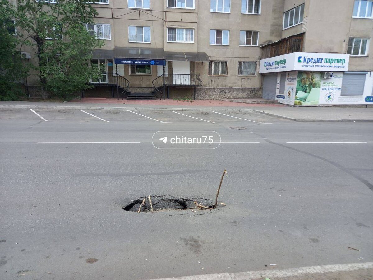 На Полины Осипенко около института провалился асфальт на дороге и кто-то заботливо вставил туда палку для предупреждения.