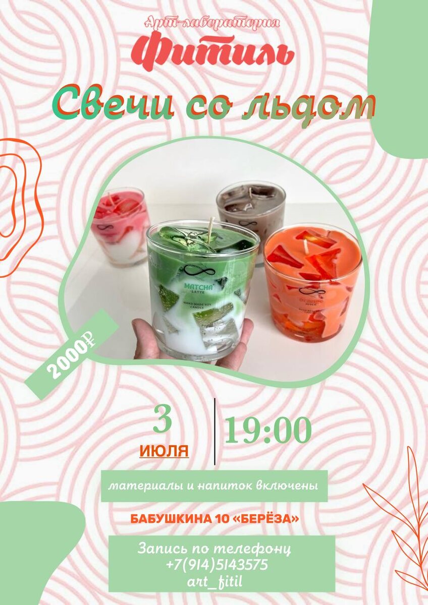 Арт-лаборатория «Фитиль» приглашает на июльские мастер-классы Организаторы предлагают создавать свечи, аромадиффузоры, расписывать зеркала и шопперы и творить гипсовые композиции. Все материалы и напитки входят в стоимость. 🪙Компаниям от 3 человек скидка 15% 🔑Все подробности и запись @Anastasia_refry_time #Афиша Предложить публикацию:@zabkulisye_bot
