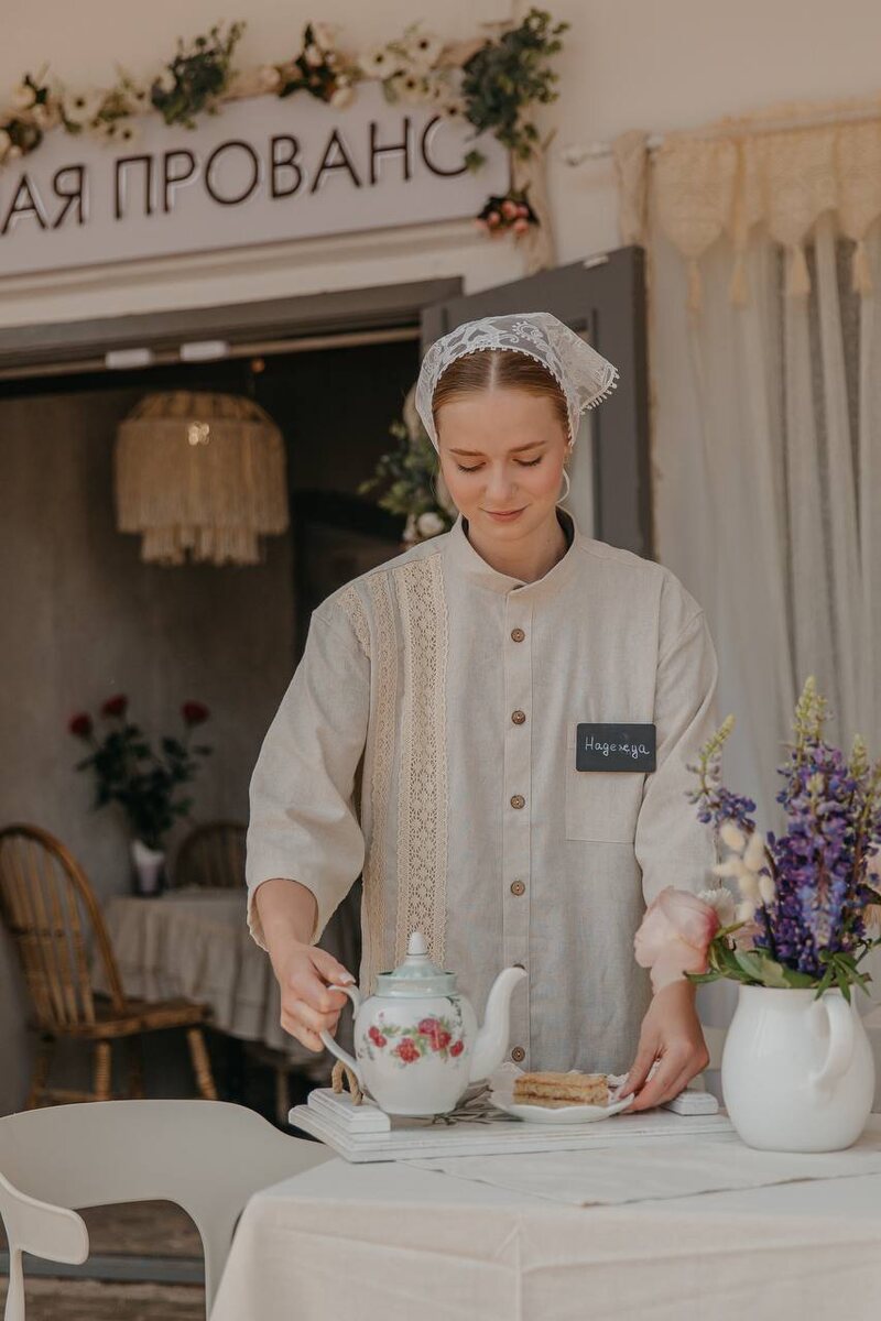С веранды Чайной Прованс открывается вид на Церковь Всемилостивого Спаса в Рядах — старинный храм XVIII века, придающий этому месту особую атмосферу.
