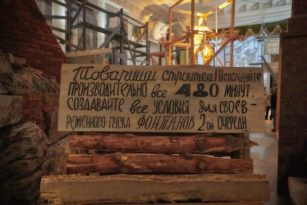 Организаторы выставки отмечают, что «возрождение Петергофа – это результат колоссального труда коллектива отечественных реставраторов, музейных работников и жителей Ленинграда».