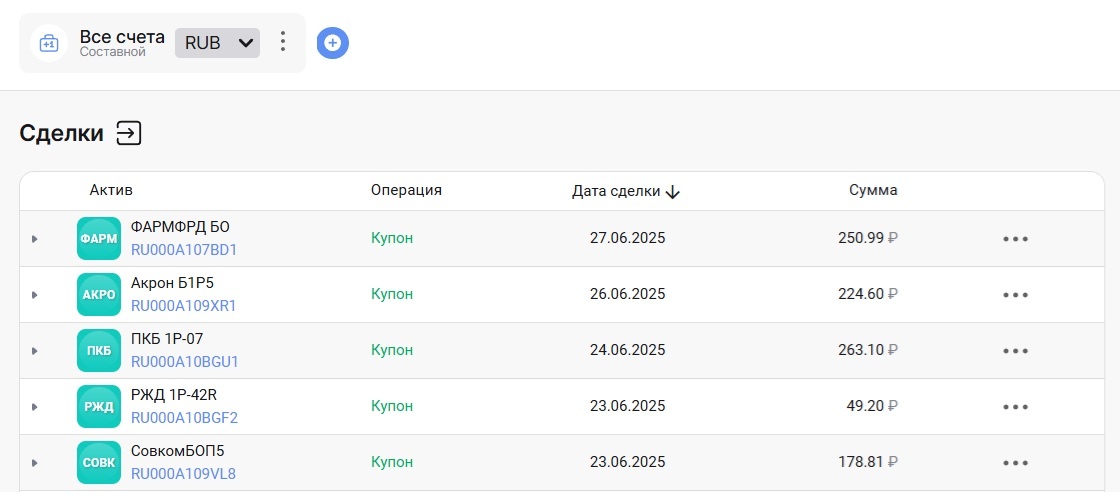 Последние купонные доходы июня получены. На этой неделе сразу по пяти выпускам был получен пассивный доход.